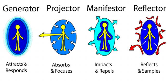 У этого типа людей отсутствует постоянный доступ к источнику энергии. Они помогают Генераторам и Манифестирующим Генераторам двигаться в нужном направлении.
